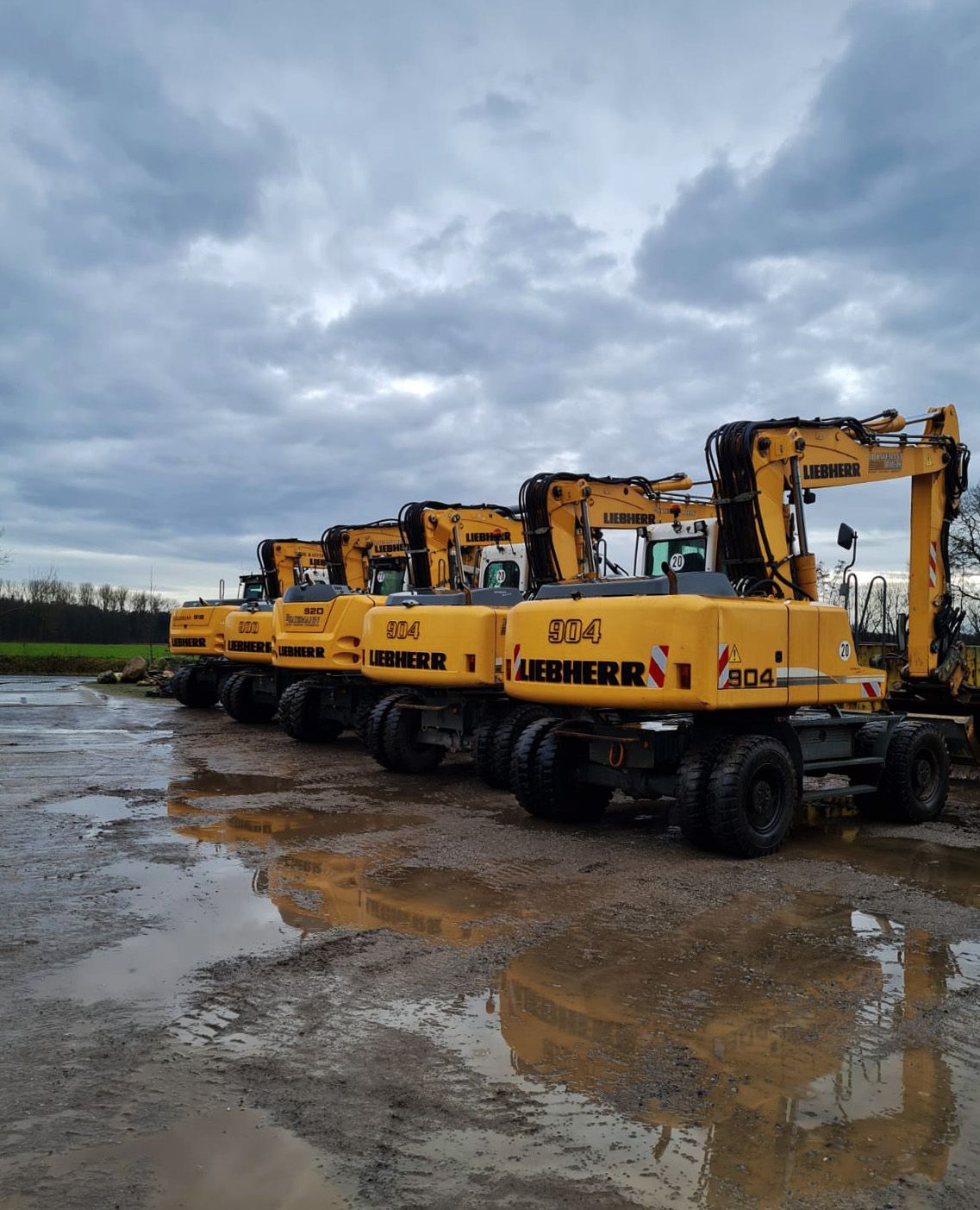 Zu den Maschinen stehen Ihnen unsere routinierten Fahrer und, je nach Anforderung, verschiedenen Anbauteile zur Verfügung.